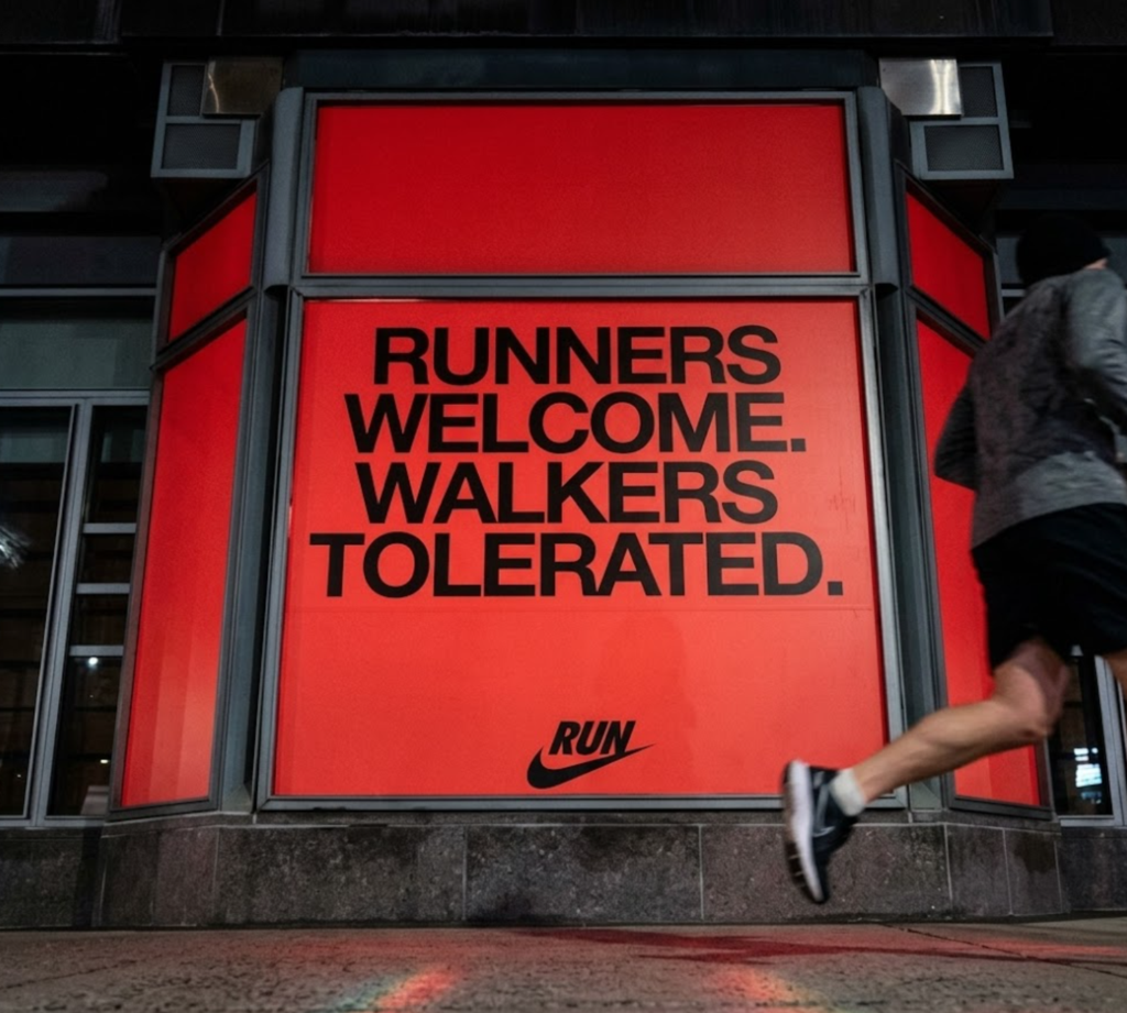 “RUNNERS WELCOME. WALKERS TOLERATED.”