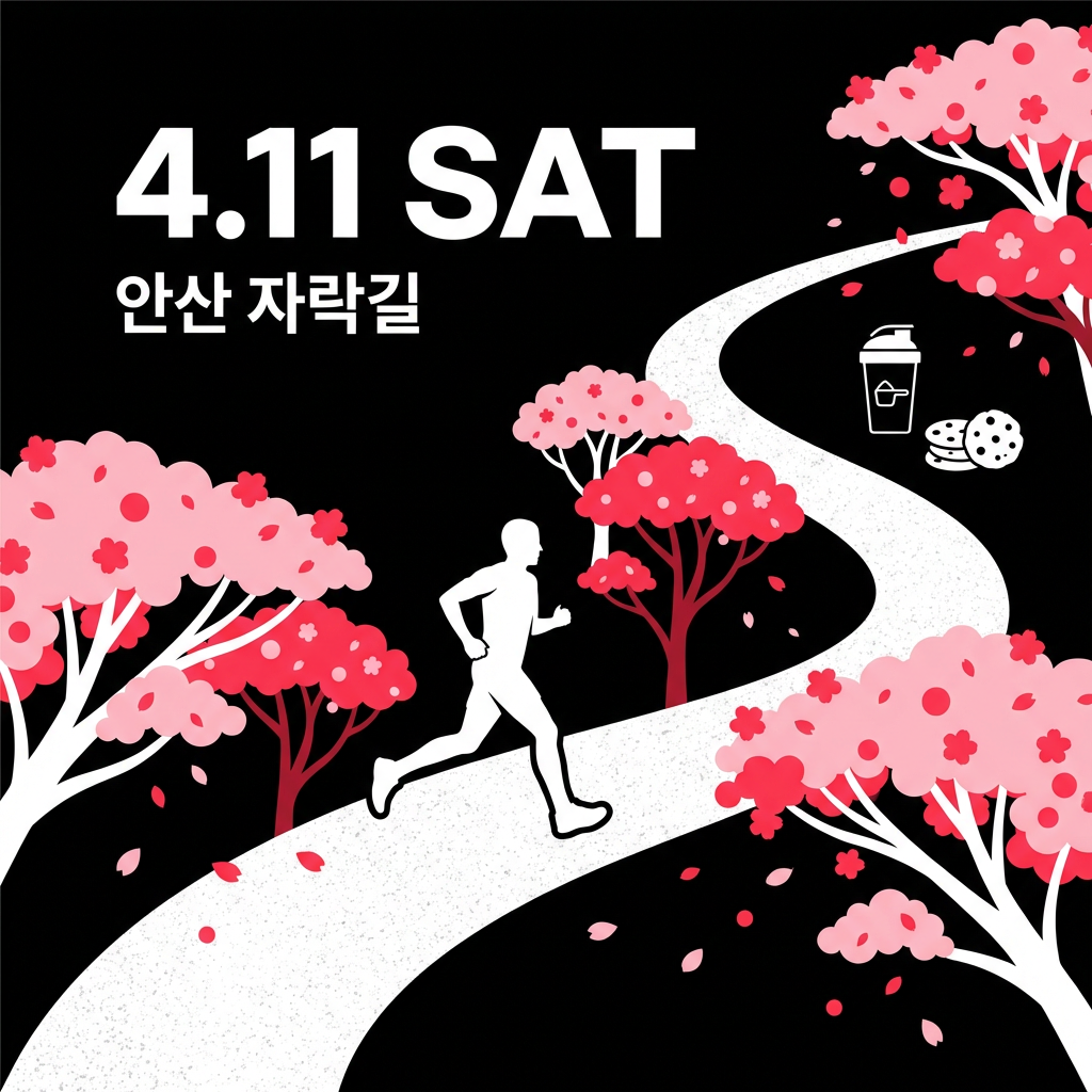 이름: 벚꽃 트레일런 10K 일시: 2026년 4월 11일 (토) 오전 9:30 집합 / 12:00경 종료 장소: 연세대학교 대운동장 집합 → 안산 자락길 트레일 코스 거리: 약 10K 참가비: 1,000원 (프로틴 음료 + 구움과자 포함)